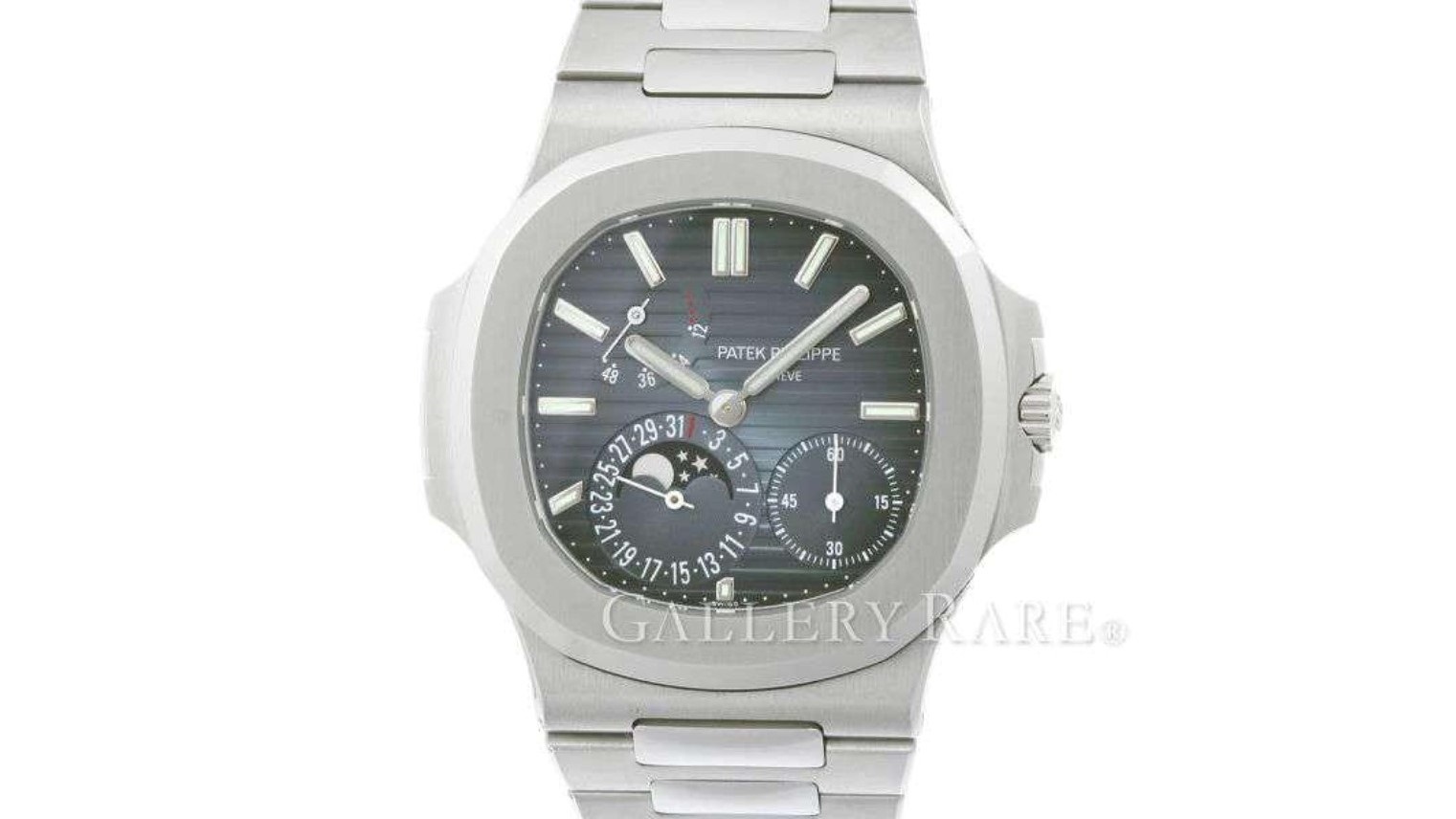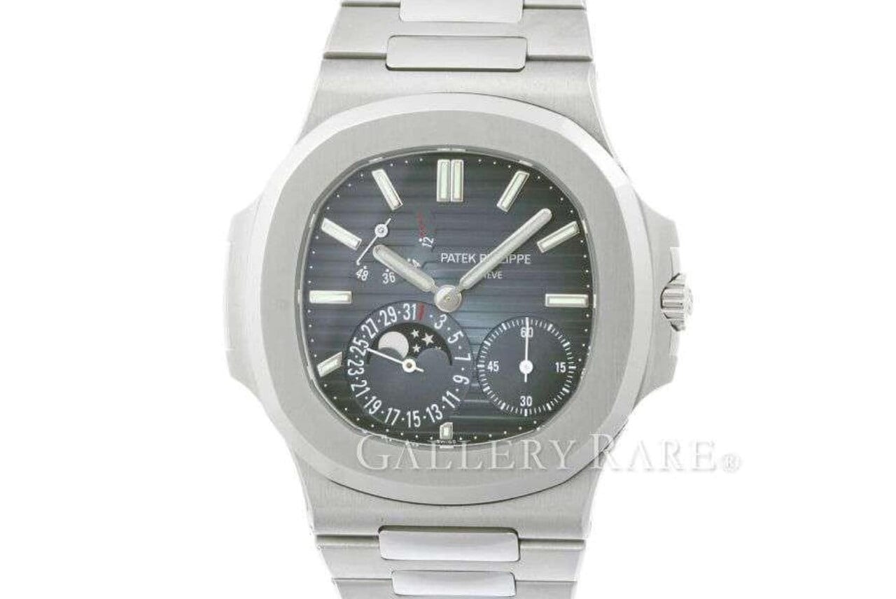 5712は、ポインターデイト、パワーリザーブ、ムーンフェイズを搭載したノーチラス。このような多機能モデルは通称、プチコンプリケーションと呼ばれています。