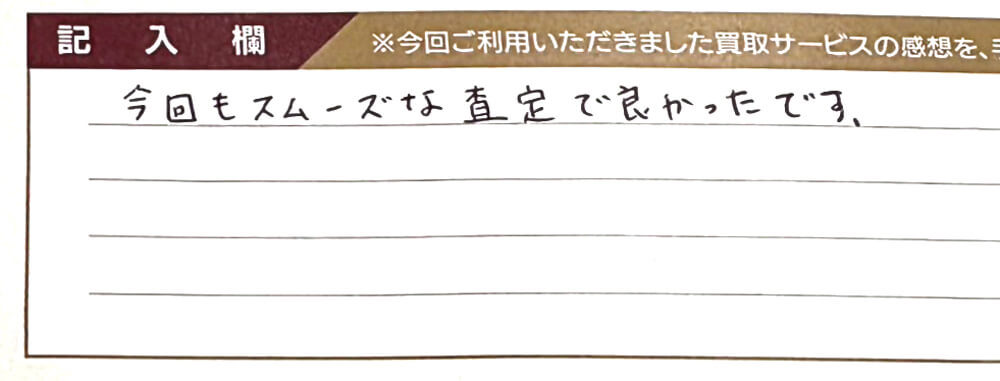 今回もスムーズな査定で良かったです。