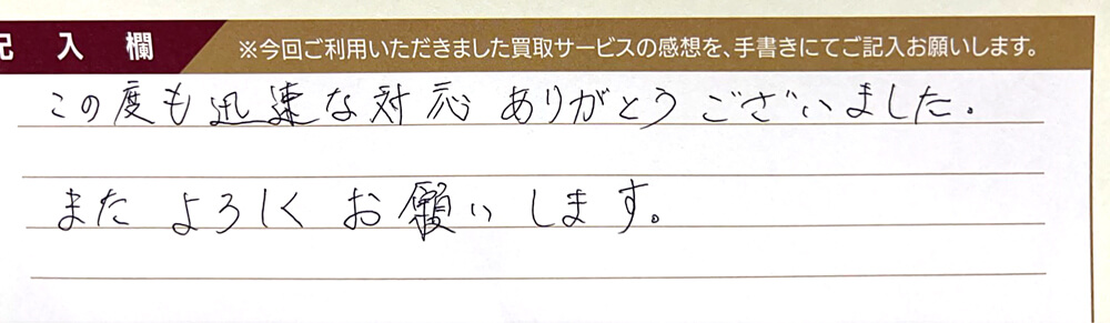 この度も迅速な対応ありがとうございました。 またよろしくお願いします。