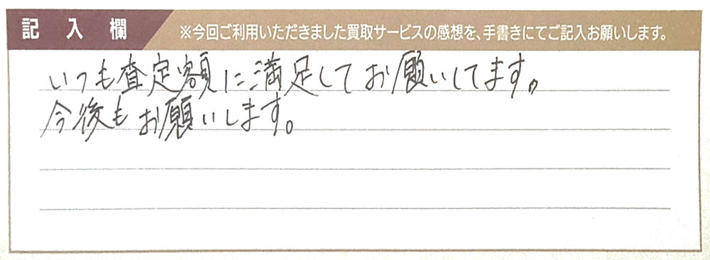 いつも査定額に満足してお願いしてます。 今後もお願いします。