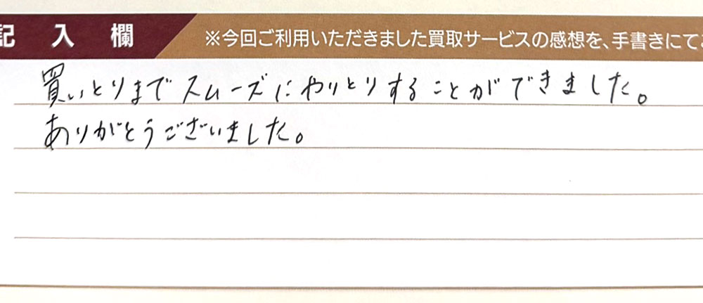 買いとりまでスムーズにやりとりすることができました。 ありがとうございました。
