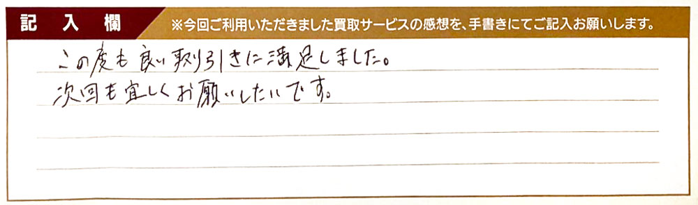 この度も良い取引きに満足しました。 次回も宜しくお願いしたいです。