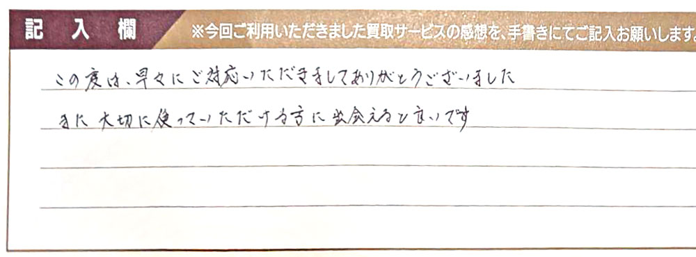 この度は、早々にご対応いただきましてありがとうございました。 また大切に使っていただける方に出会えると良いです。