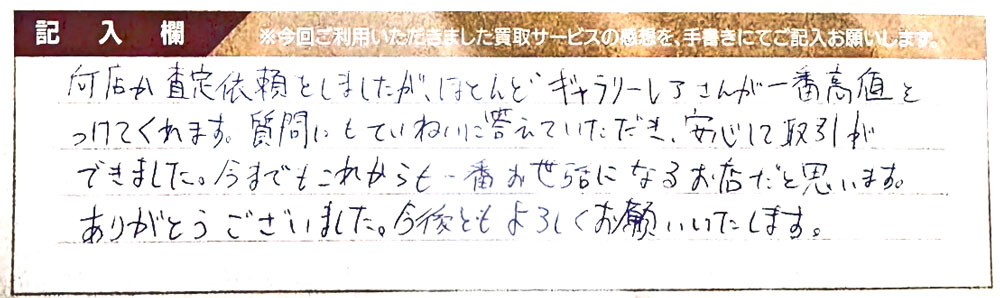 何店か査定依頼をしましたが、ほとんどギャラリーレアさんが一番高値をつけてくれます。