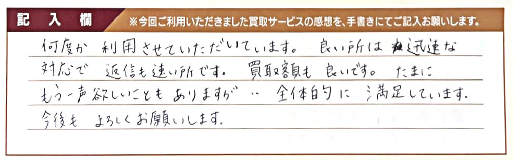 良い所は迅速な対応で返信も速い所です。