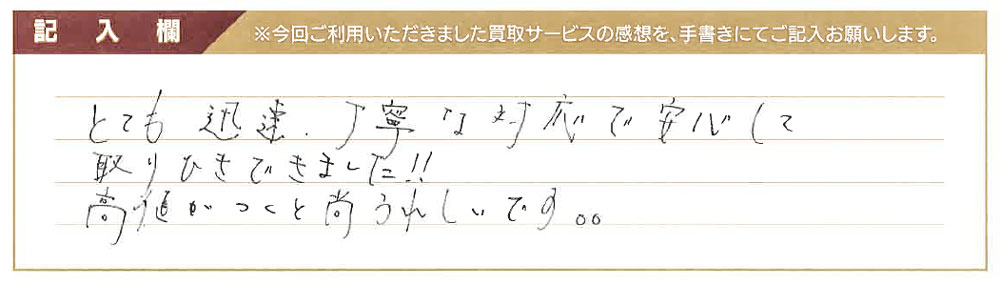 とても迅速、丁寧な対応で安心して取りひきできました!! 高値がつくと尚うれしいです。。