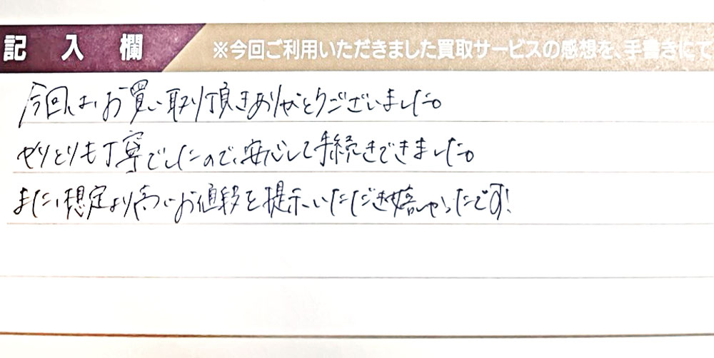 今回は、お買い取り頂きありがとうございました。