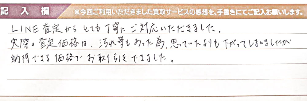 LINE査定からとても丁寧にご対応いただきました。