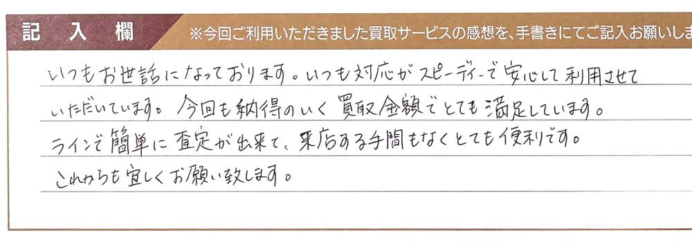 ラインで簡単に査定が出来て、来店する手間もなくとても便利です。