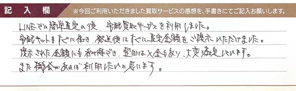 LINEでの簡単査定の後、宅配買取サービスを利用しました。