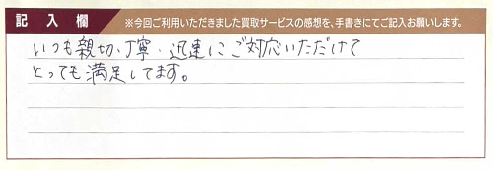 いつも親切・丁寧・迅速にご対応いただけて、とっても満足してます。