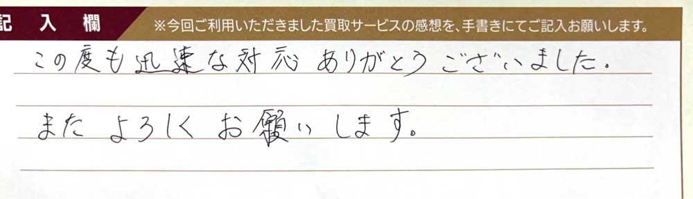 この度も迅速な対応ありがとうございました。 またよろしくお願いします。