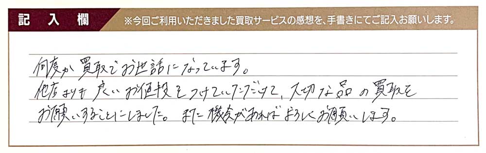他店よりも良いお値段をつけていただけて、大切な品の買取をお願いすることにしました。